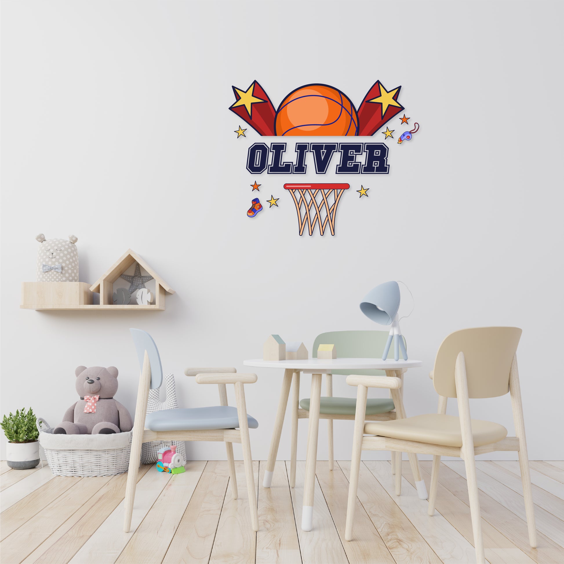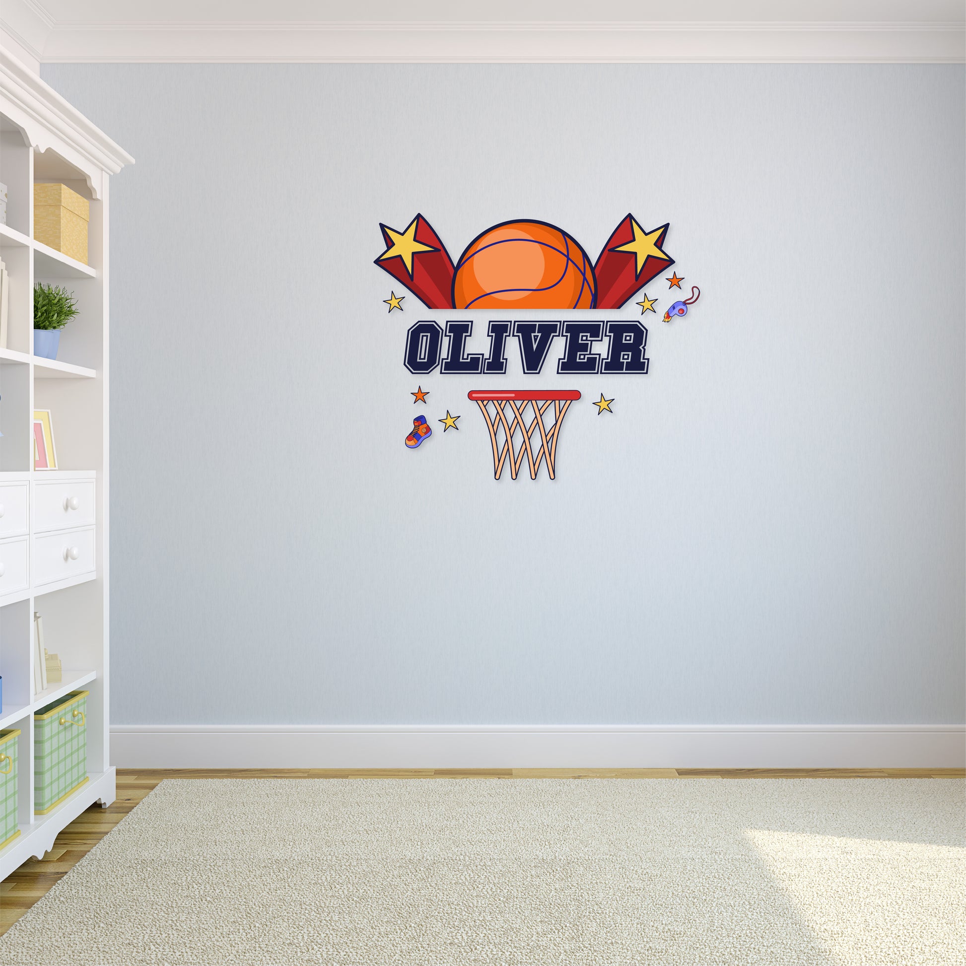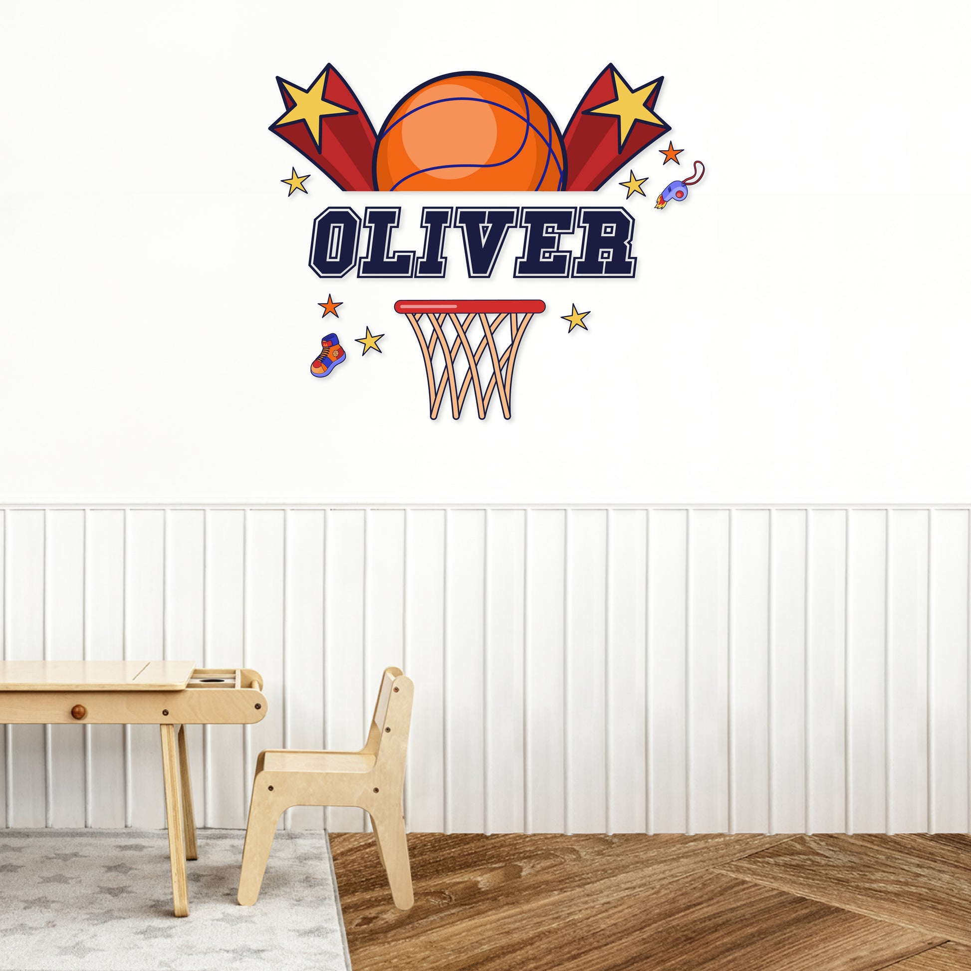 Custom Wall Decals - Custom Name Basketball Slam Wall Decal: Ball, Basketball Hoop, Sneakers, Whistle, Stars