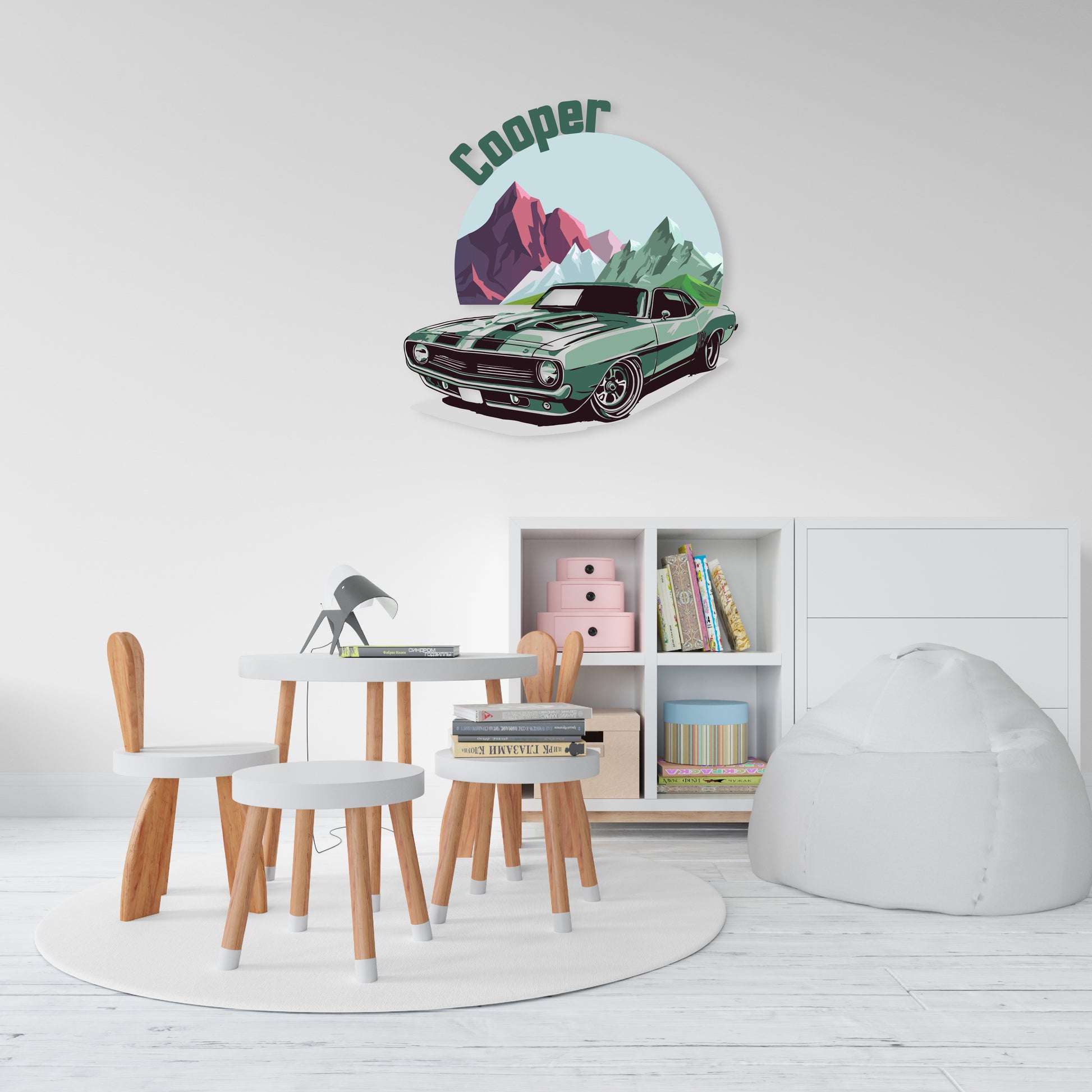 Embark on a mountainous journey with our 'Custom Name Mountain Adventure' wall decal collection. Your name takes center stage alongside a green car against a backdrop of majestic mountains. Personalize your walls with this adventurous design and bring the thrill of mountain exploration indoors.