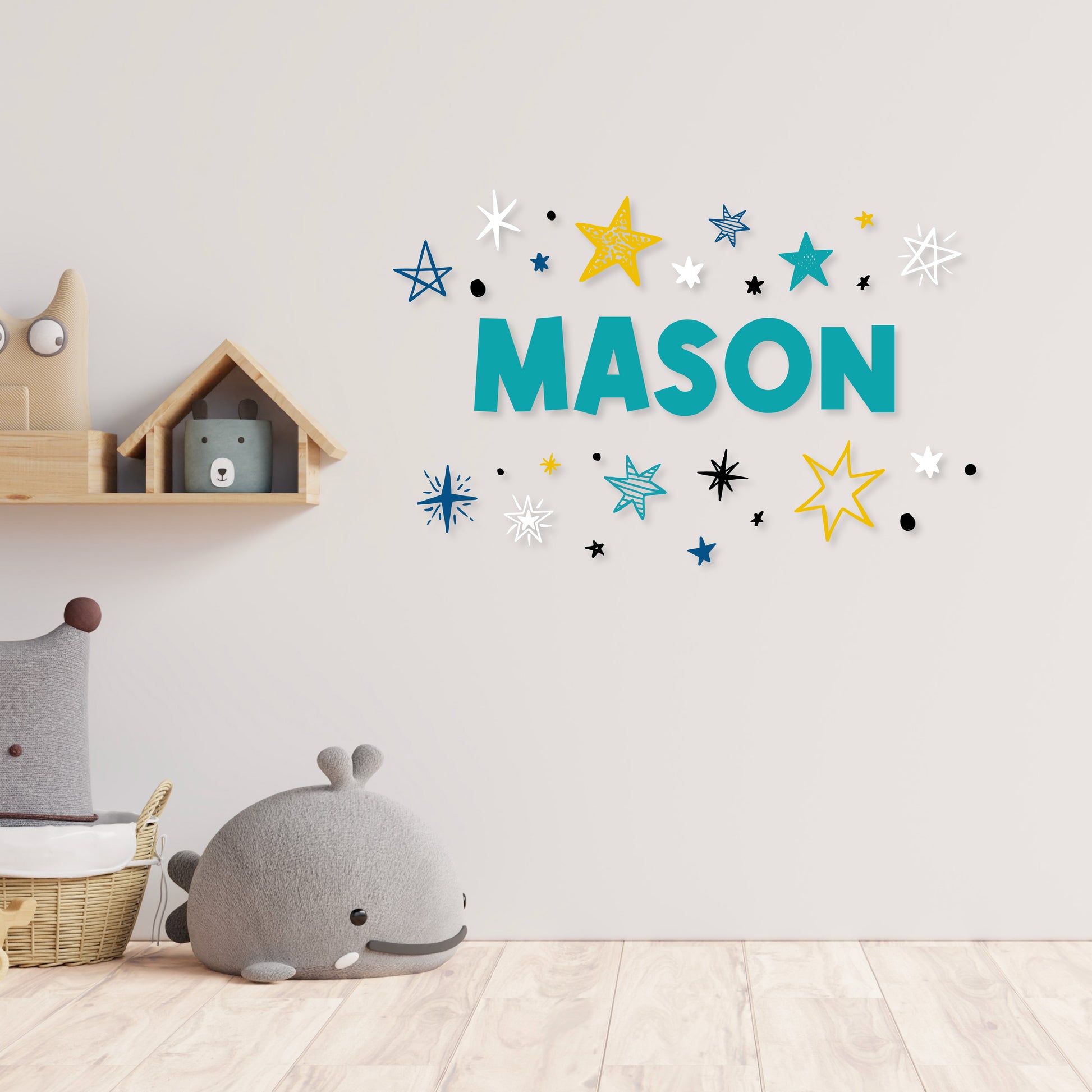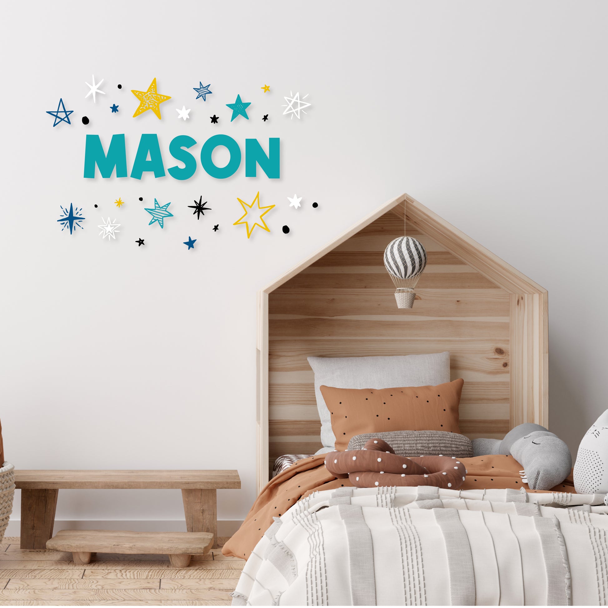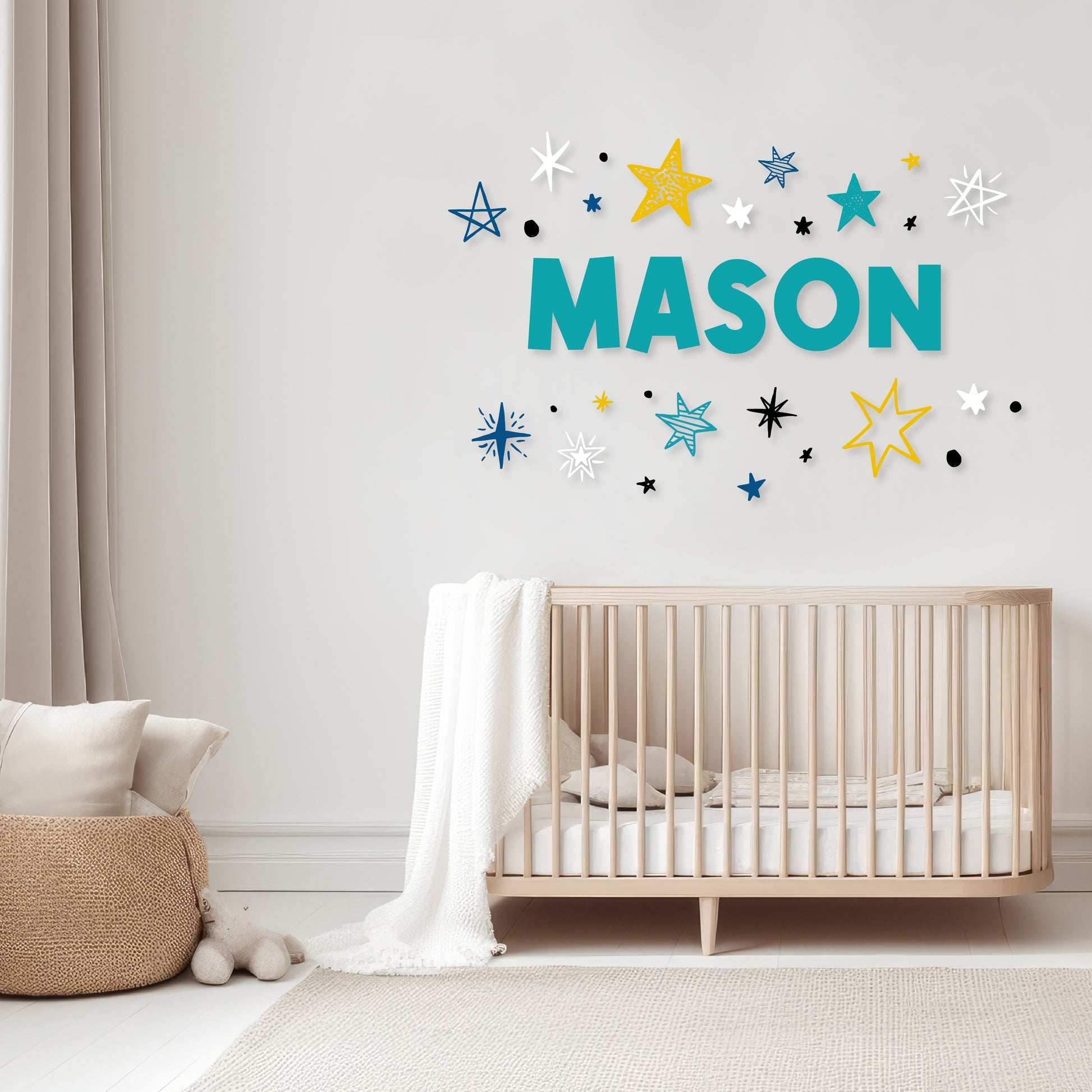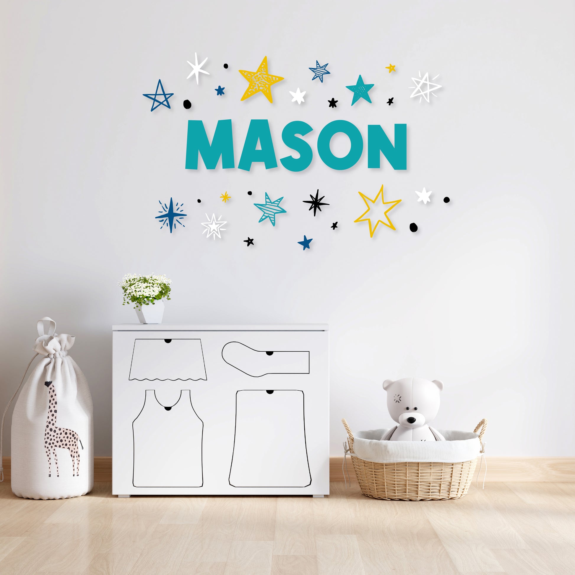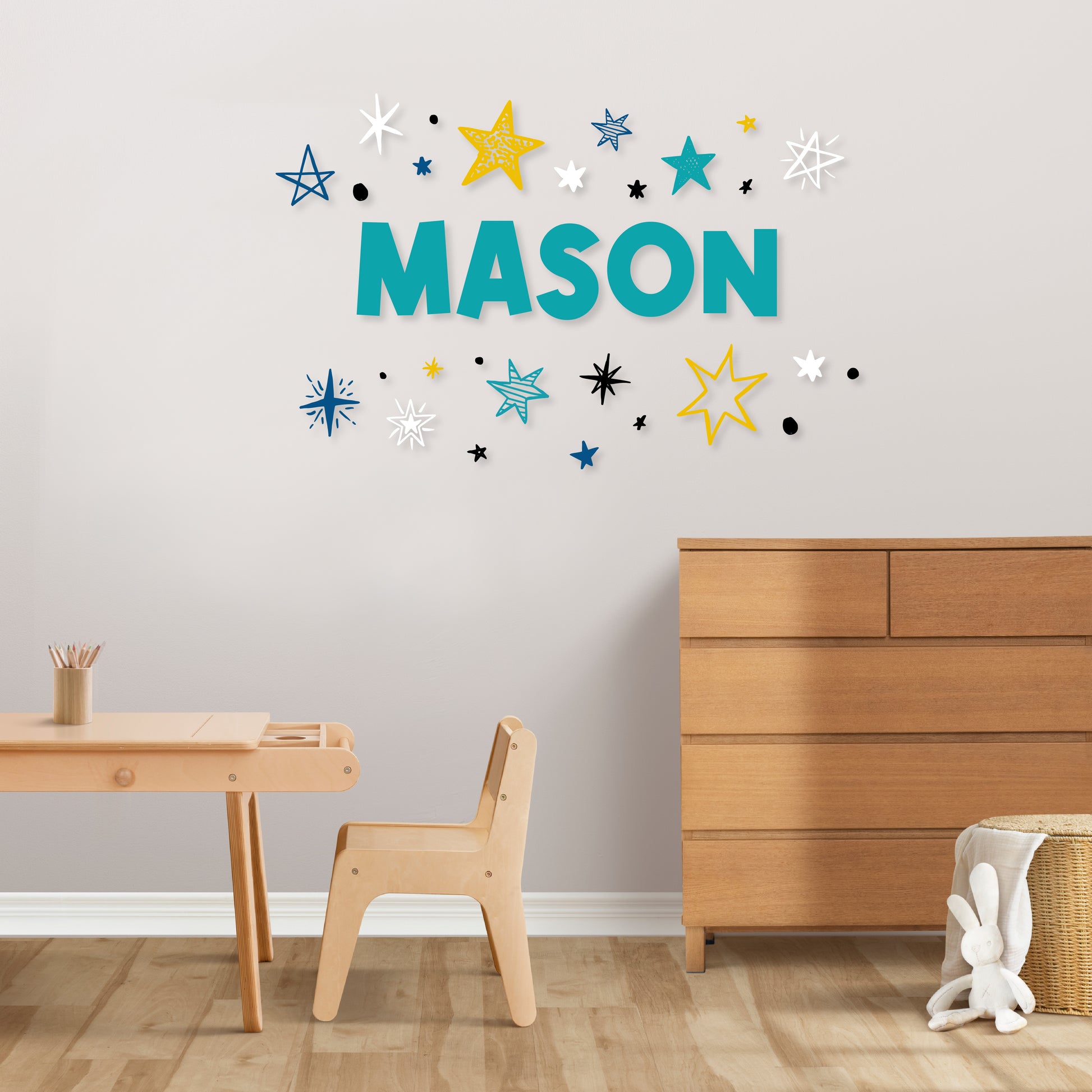 Turn your walls into a celestial masterpiece with our 'Custom Name Multicolored Stars' wall decal collection. Your name is featured amidst a vibrant and starry atmosphere, creating a cosmic and enchanting ambiance. Personalize your space with this stellar design and let the stars shine in every corner.