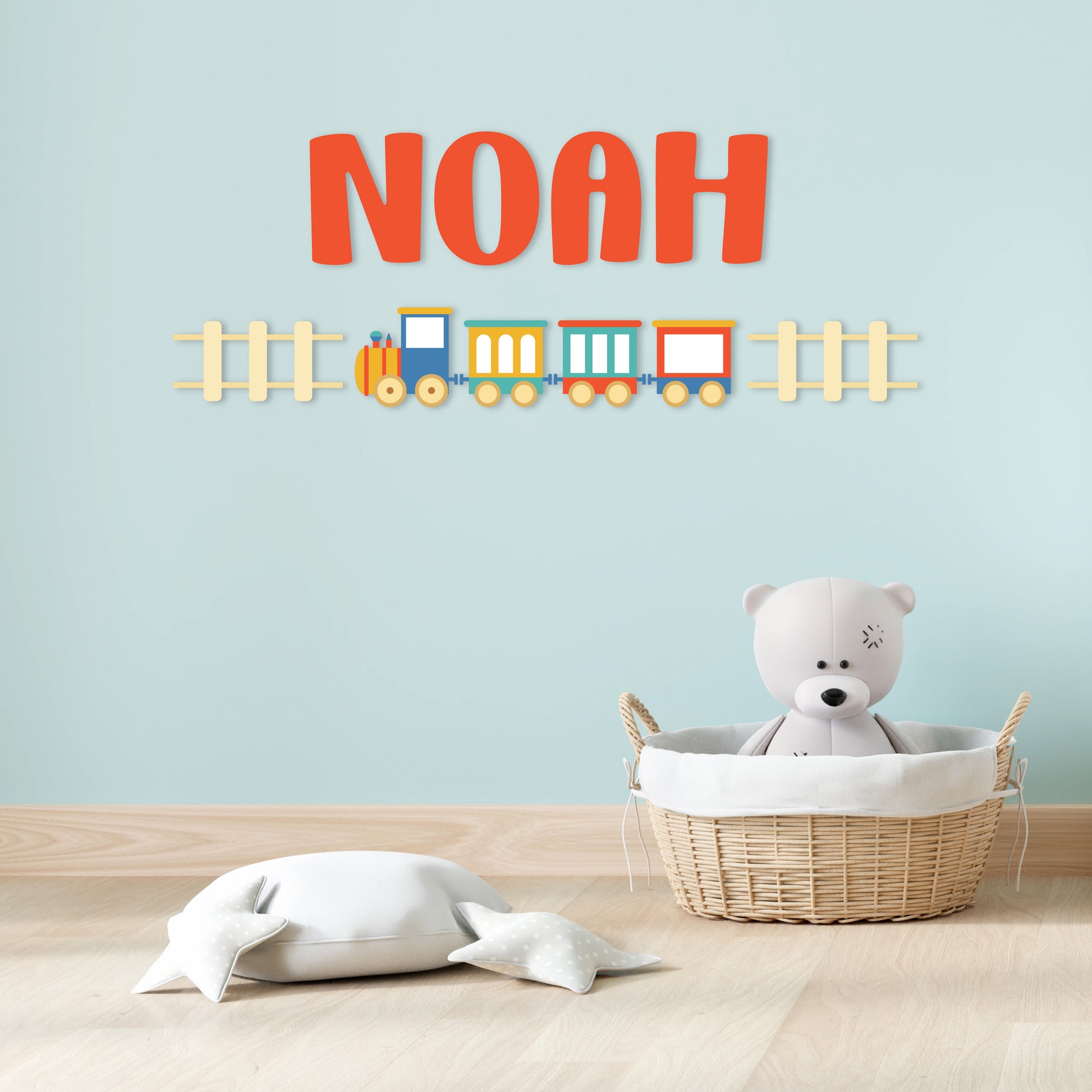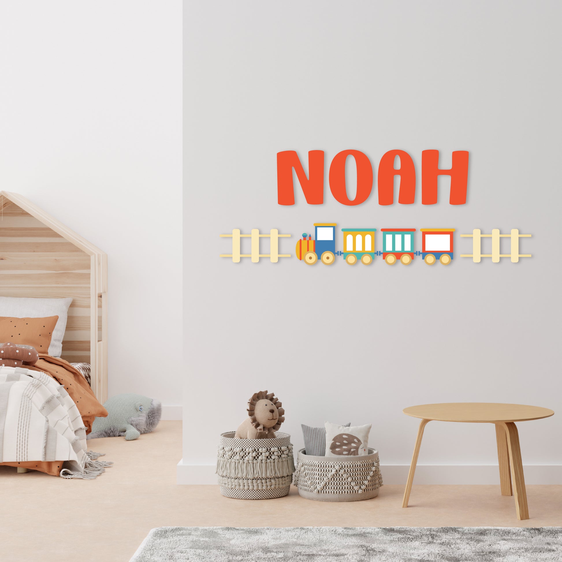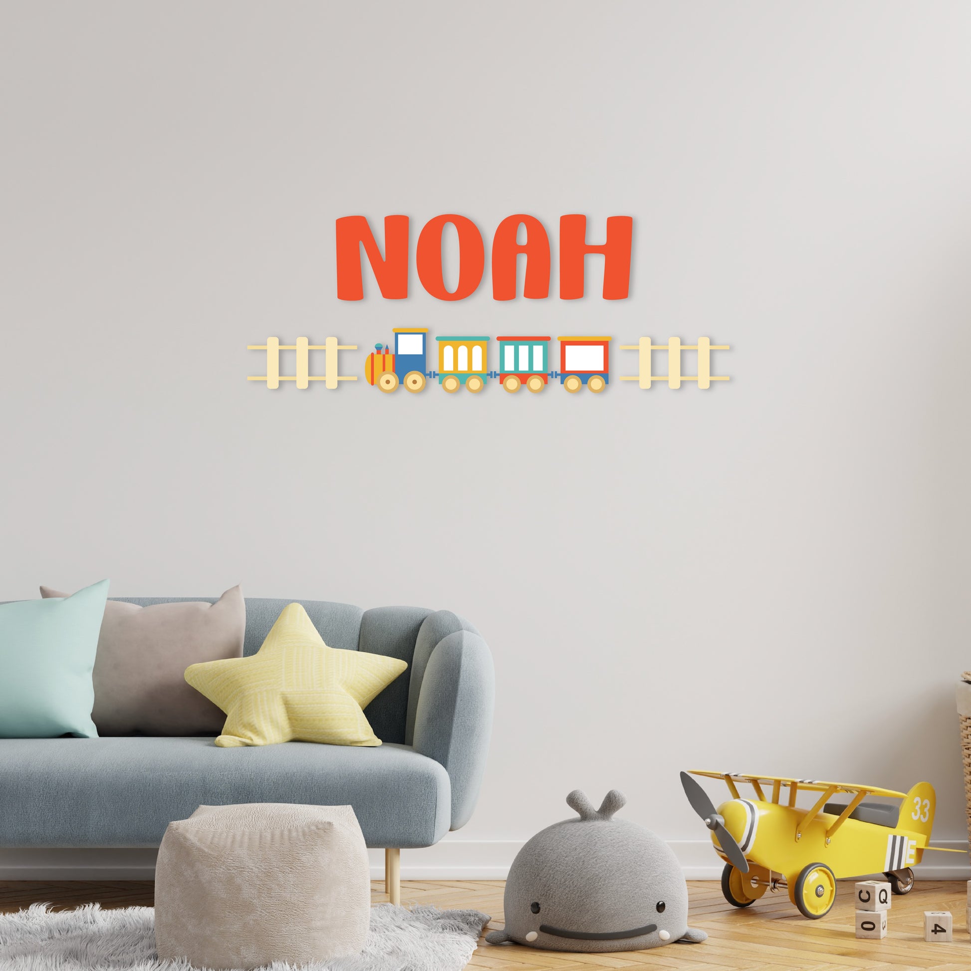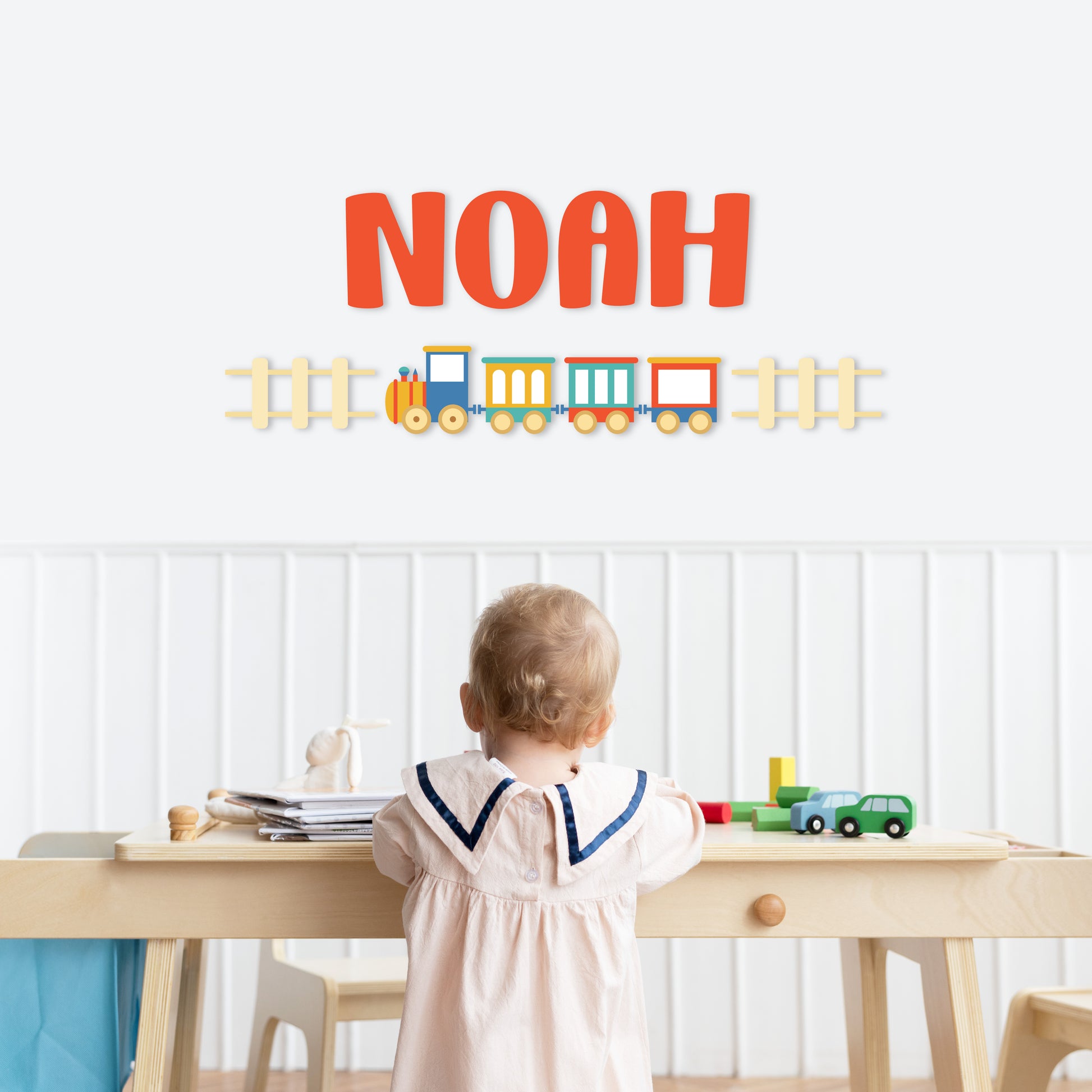 All aboard for whimsical fun with our 'Custom Name Toy Train' wall decal collection. Your name takes center stage alongside a delightful toy train, complete with a whistle-blowing conductor. Personalize your walls with this charming design and let the joy of railway adventures fill your space.