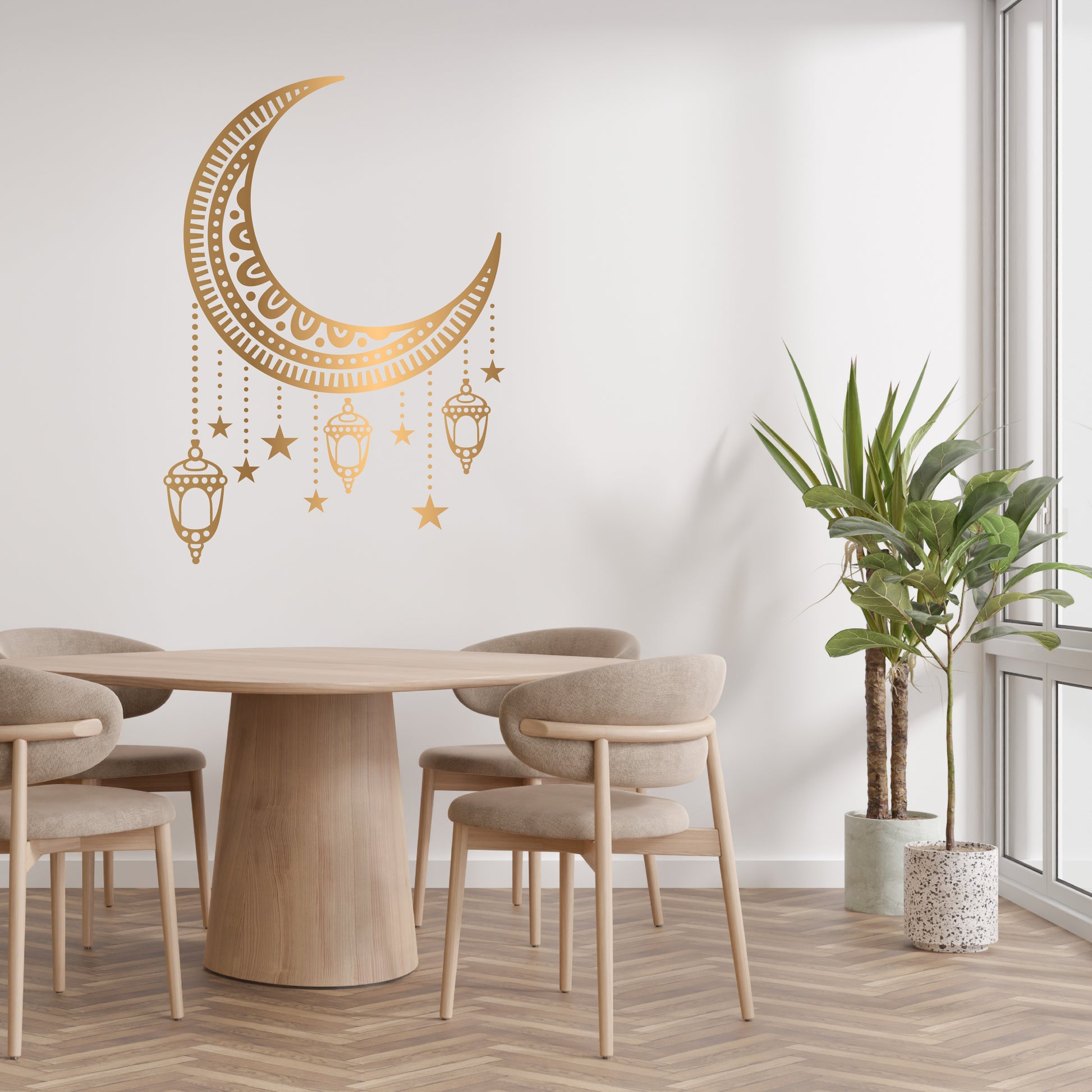 Illuminate your space with the symbolic beauty of our 'Islamic Lunar Radiance' crescent moon wall decal. This design adds a touch of cultural elegance and spiritual serenity to your walls, creating a visually captivating focal point.