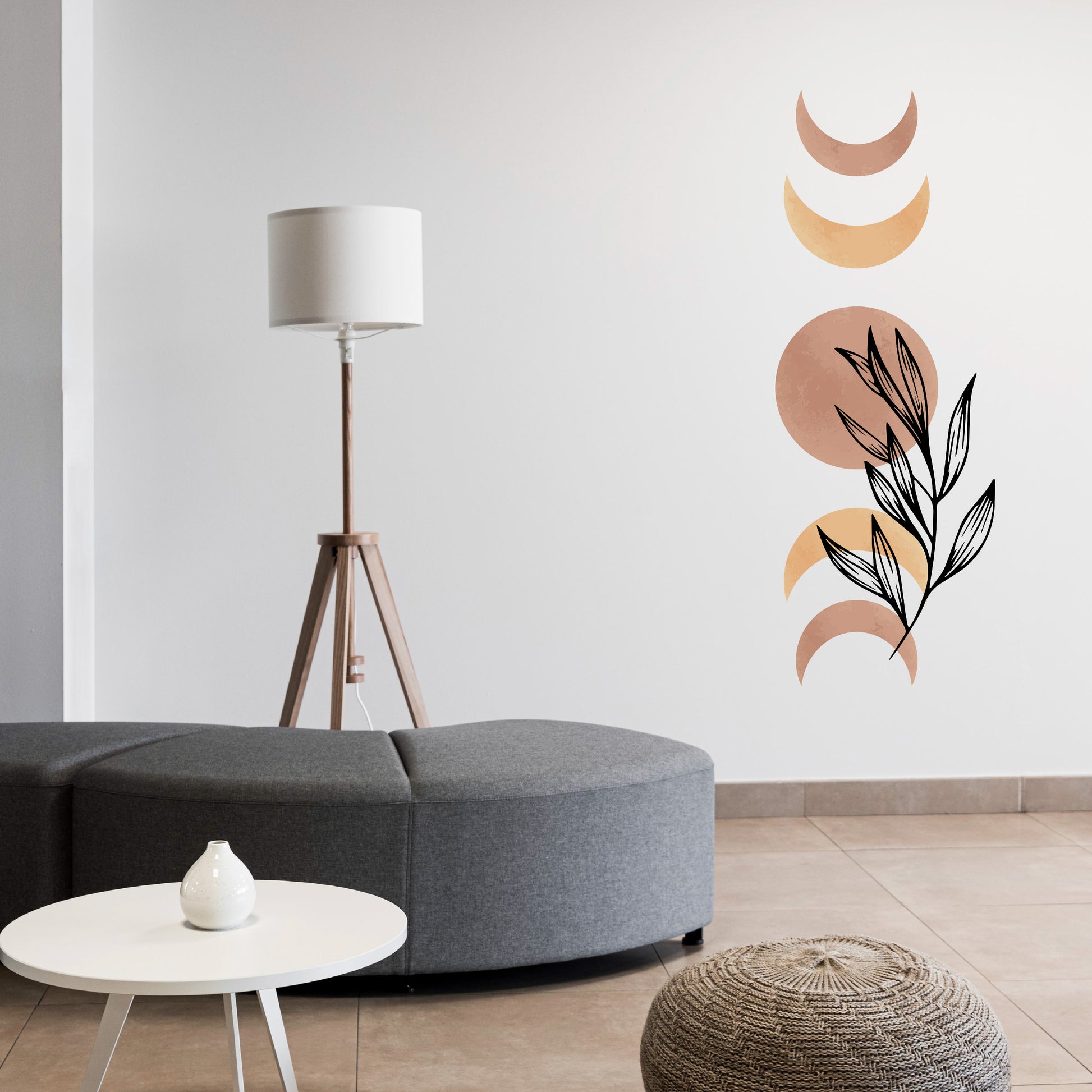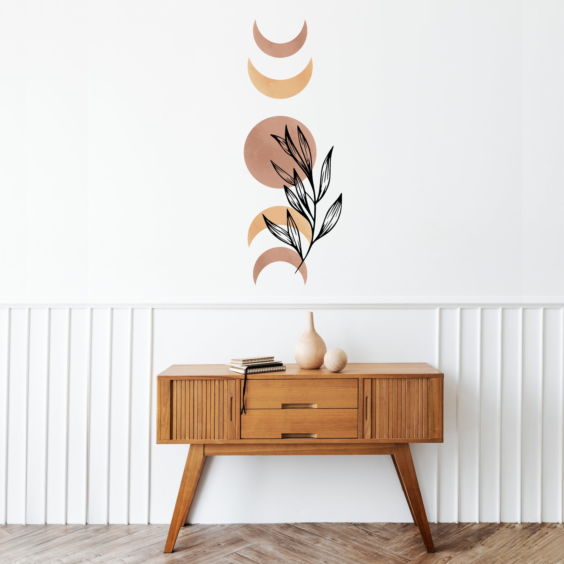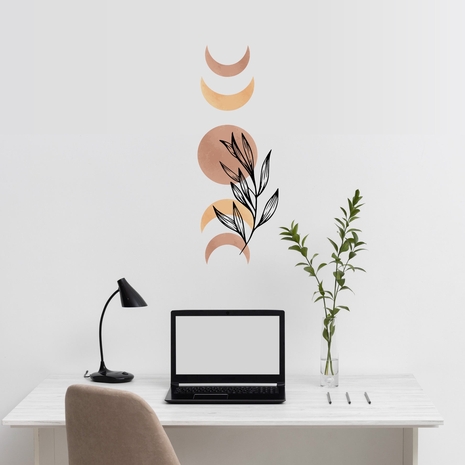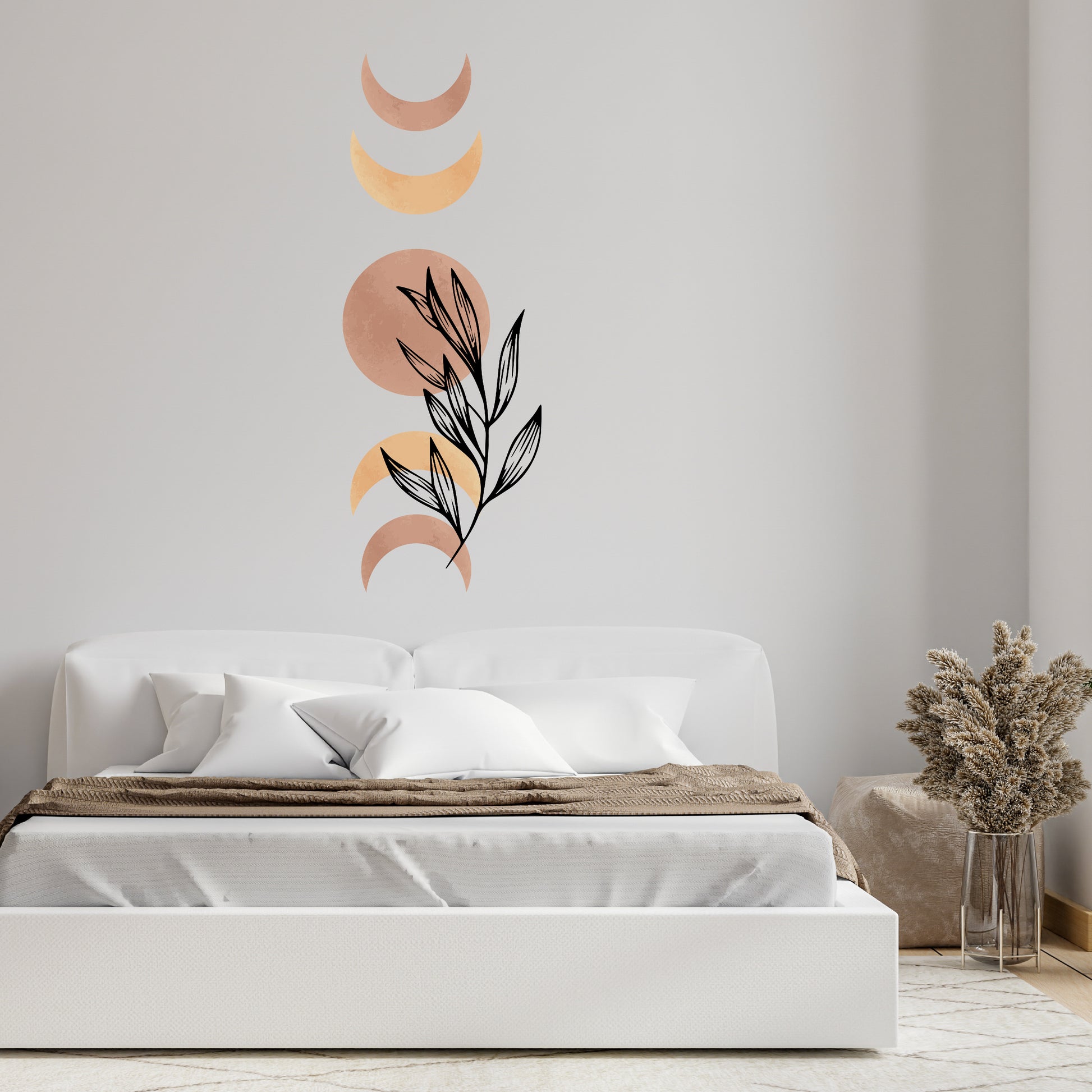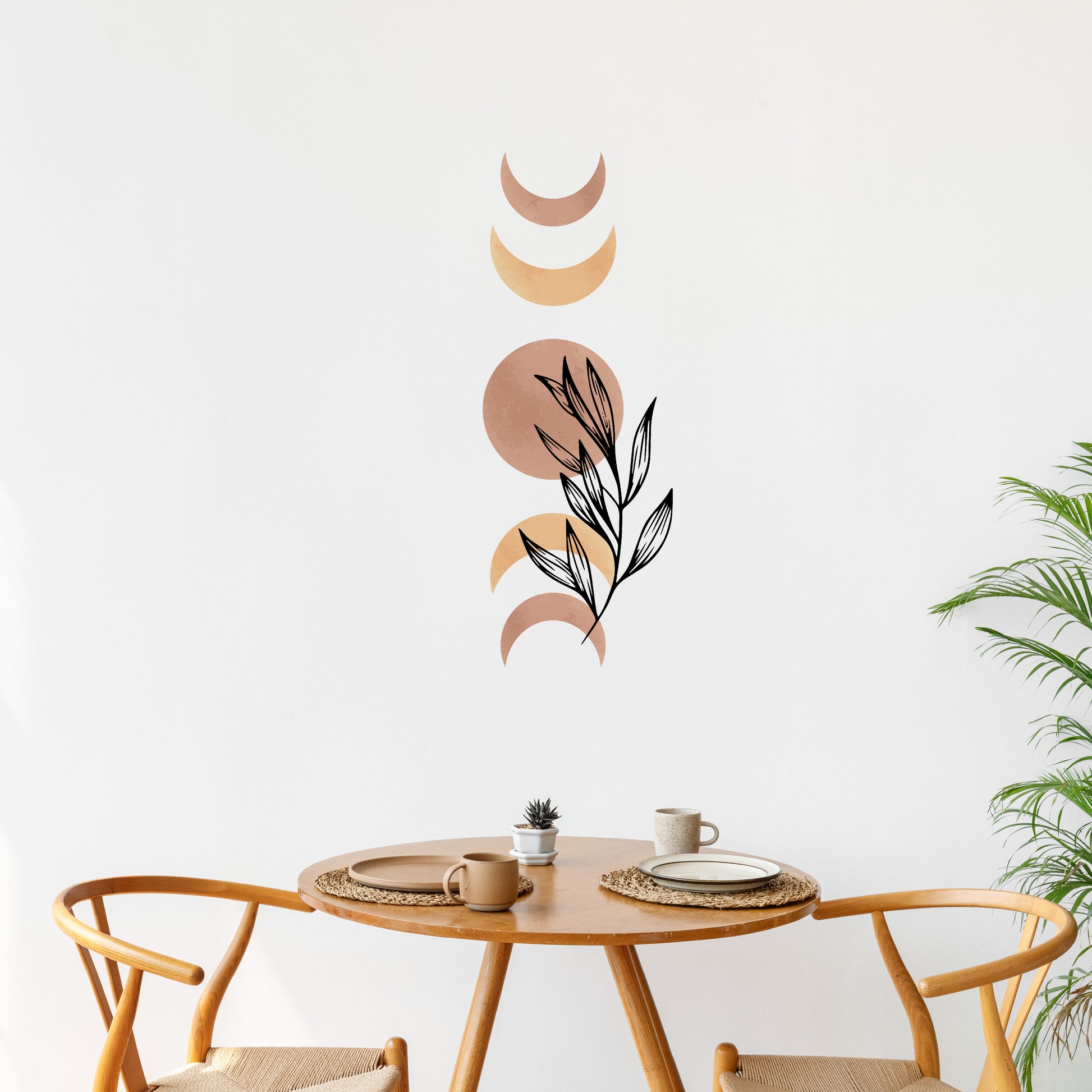 Experience the celestial dance of 'Lunar Harmony.' This wall decal gracefully combines the phases of the moon with a flourishing plant, symbolizing the cyclical beauty of nature and the cosmos. Let this artistry bring a touch of cosmic serenity to your space.
