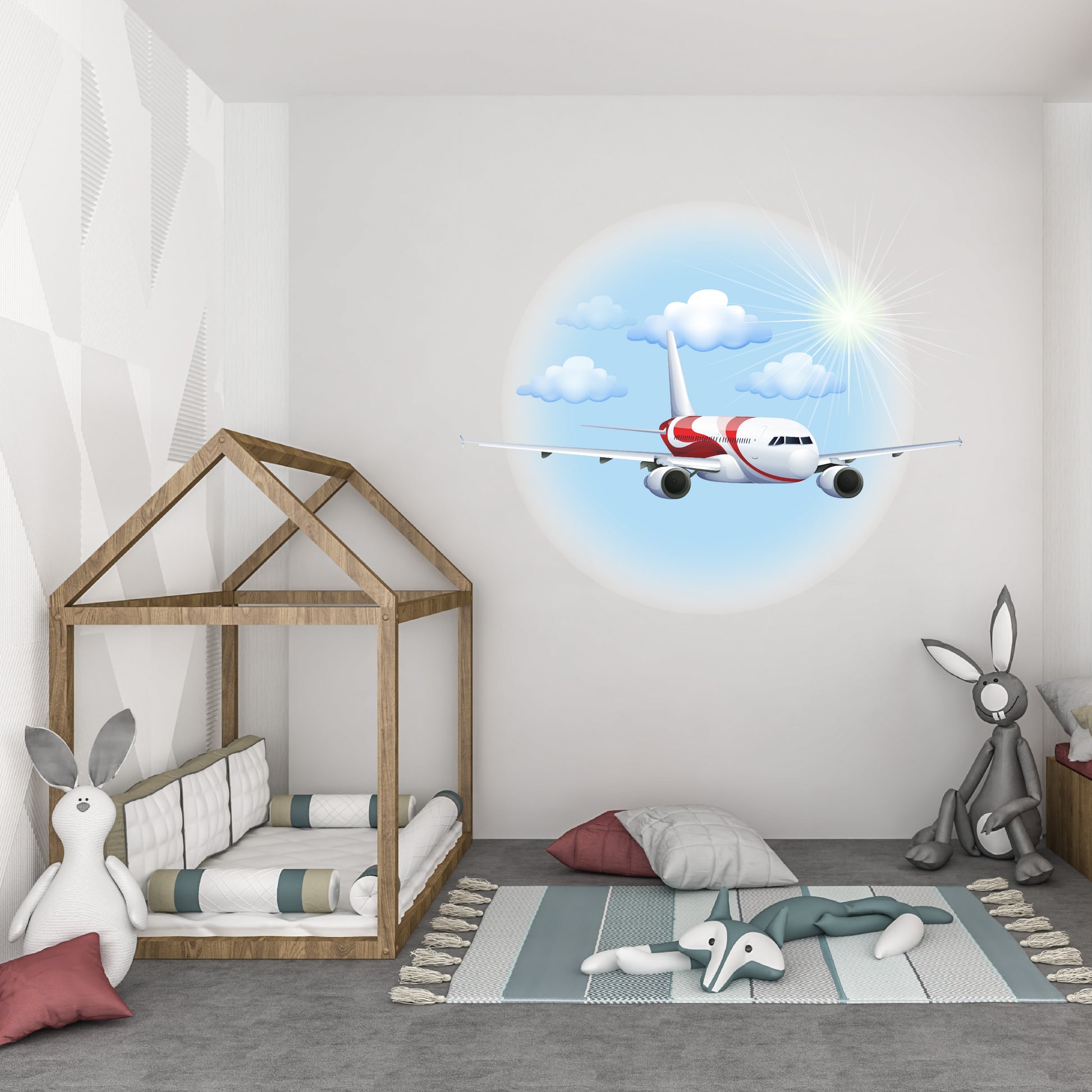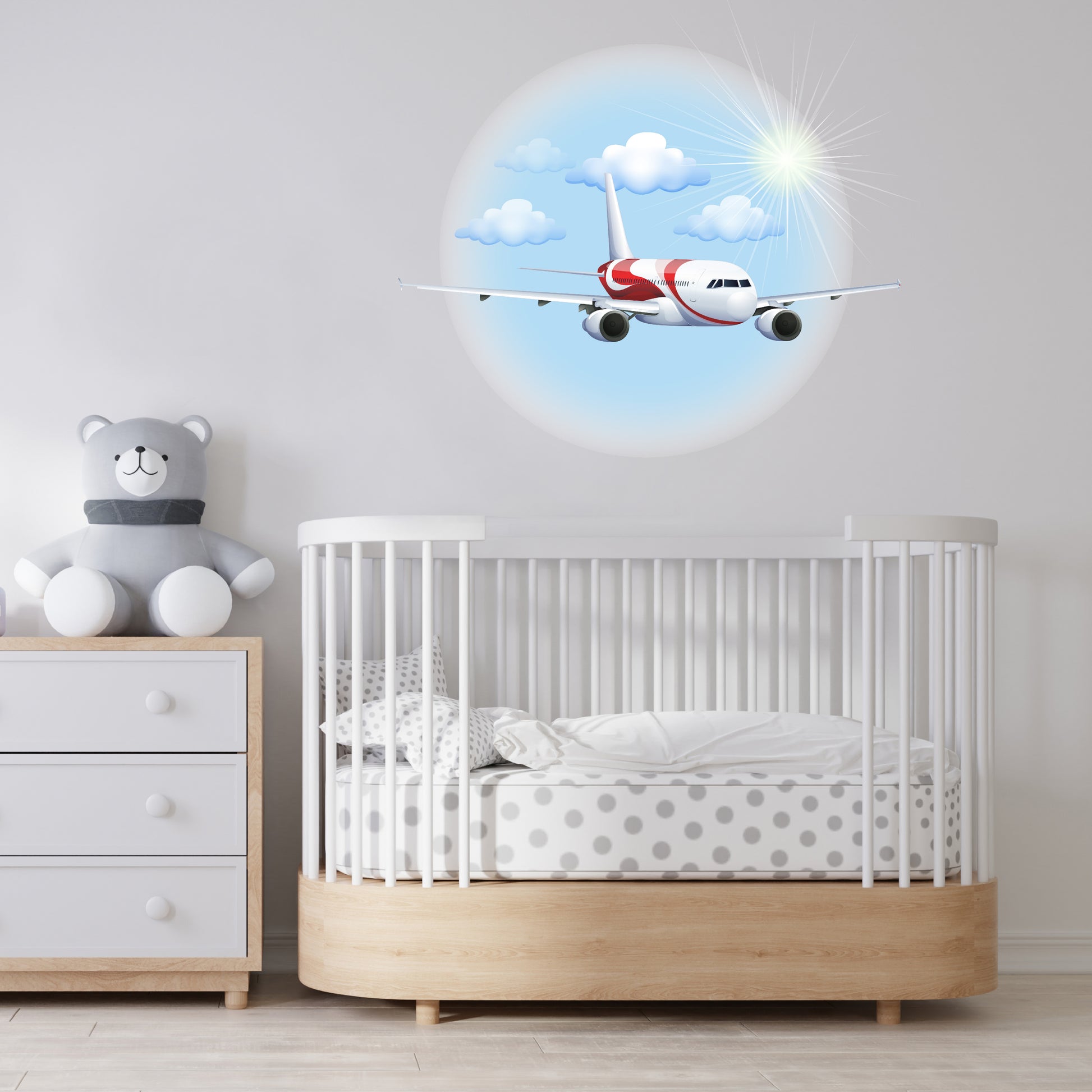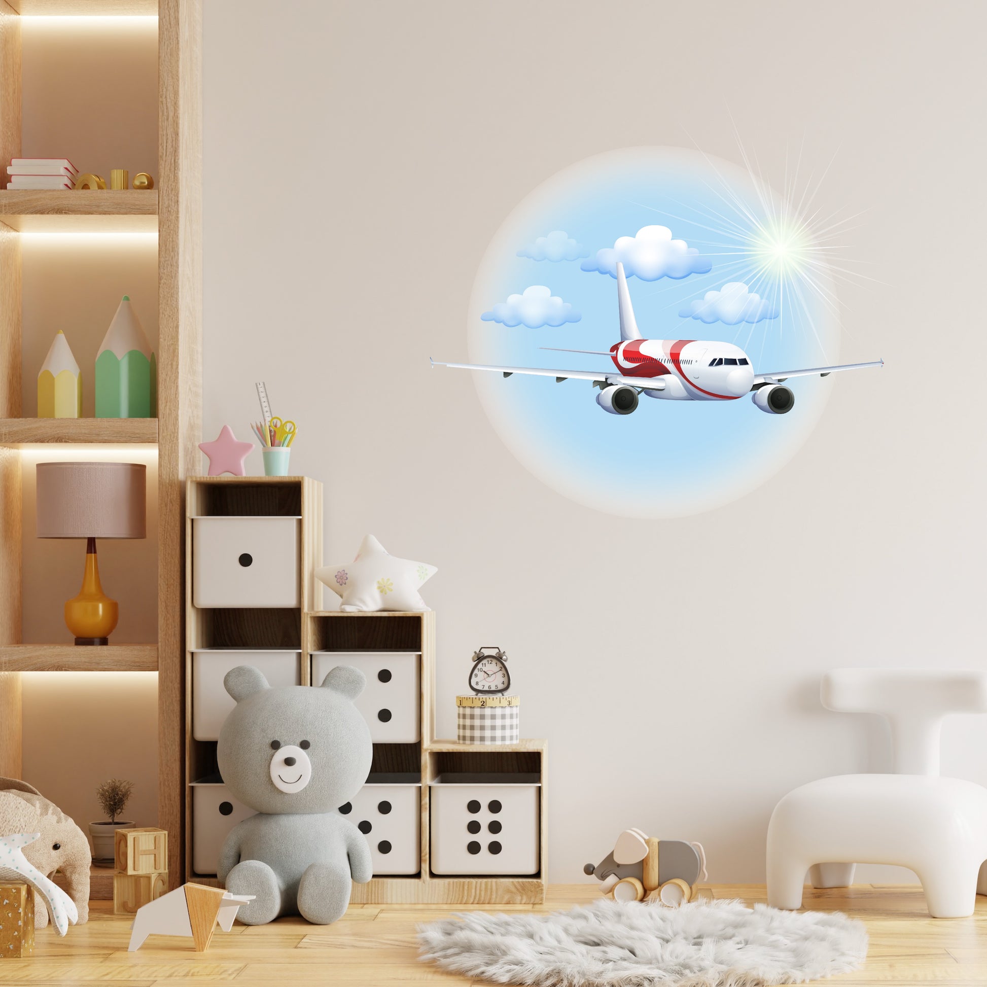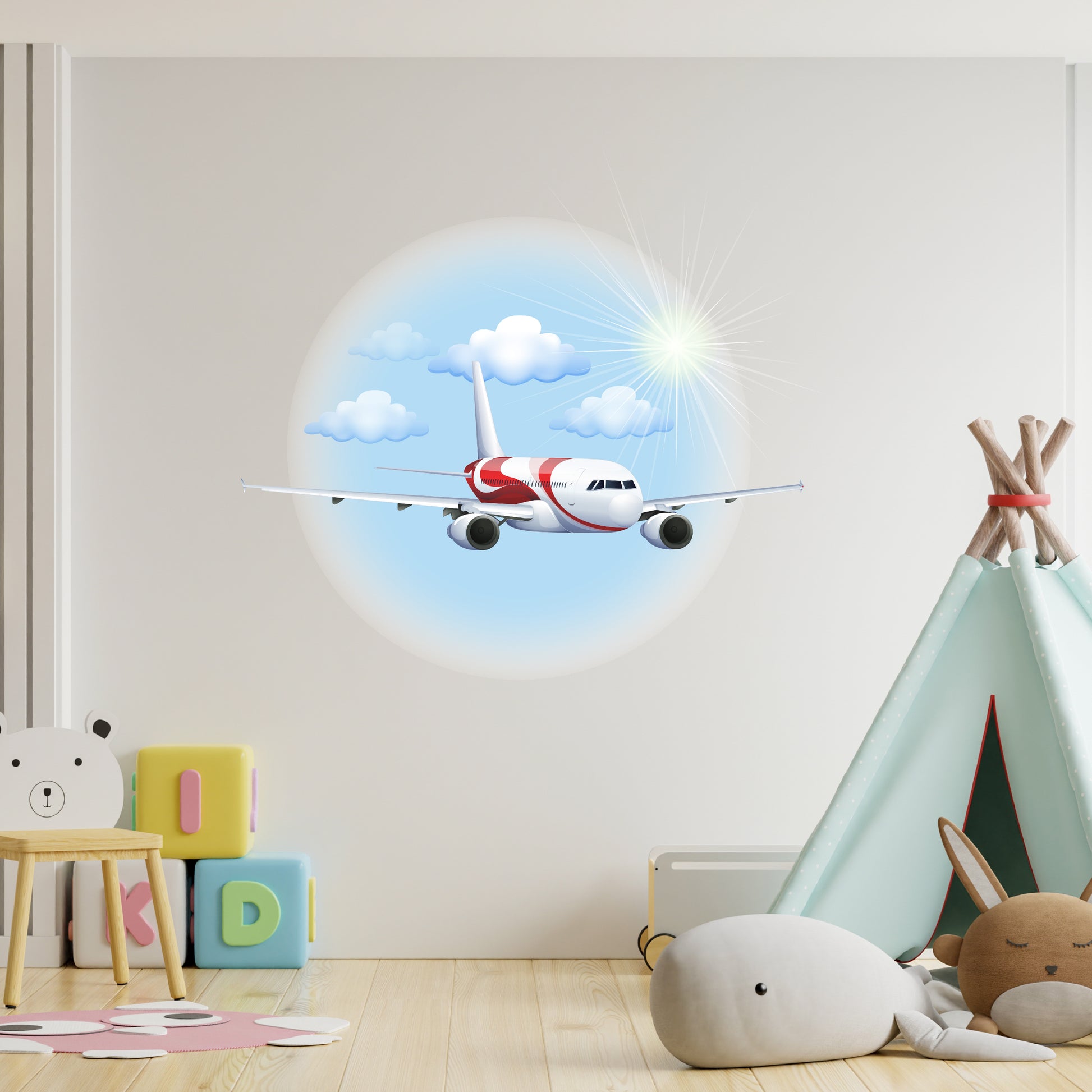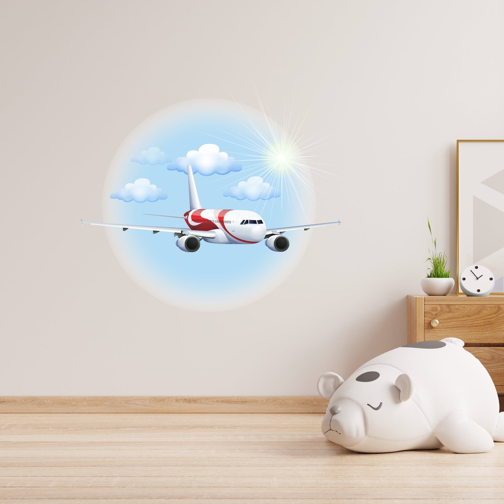 Custom Wall Decals - Sky High Serenity: Airplane, Sun, and Clouds Wall Decal Set