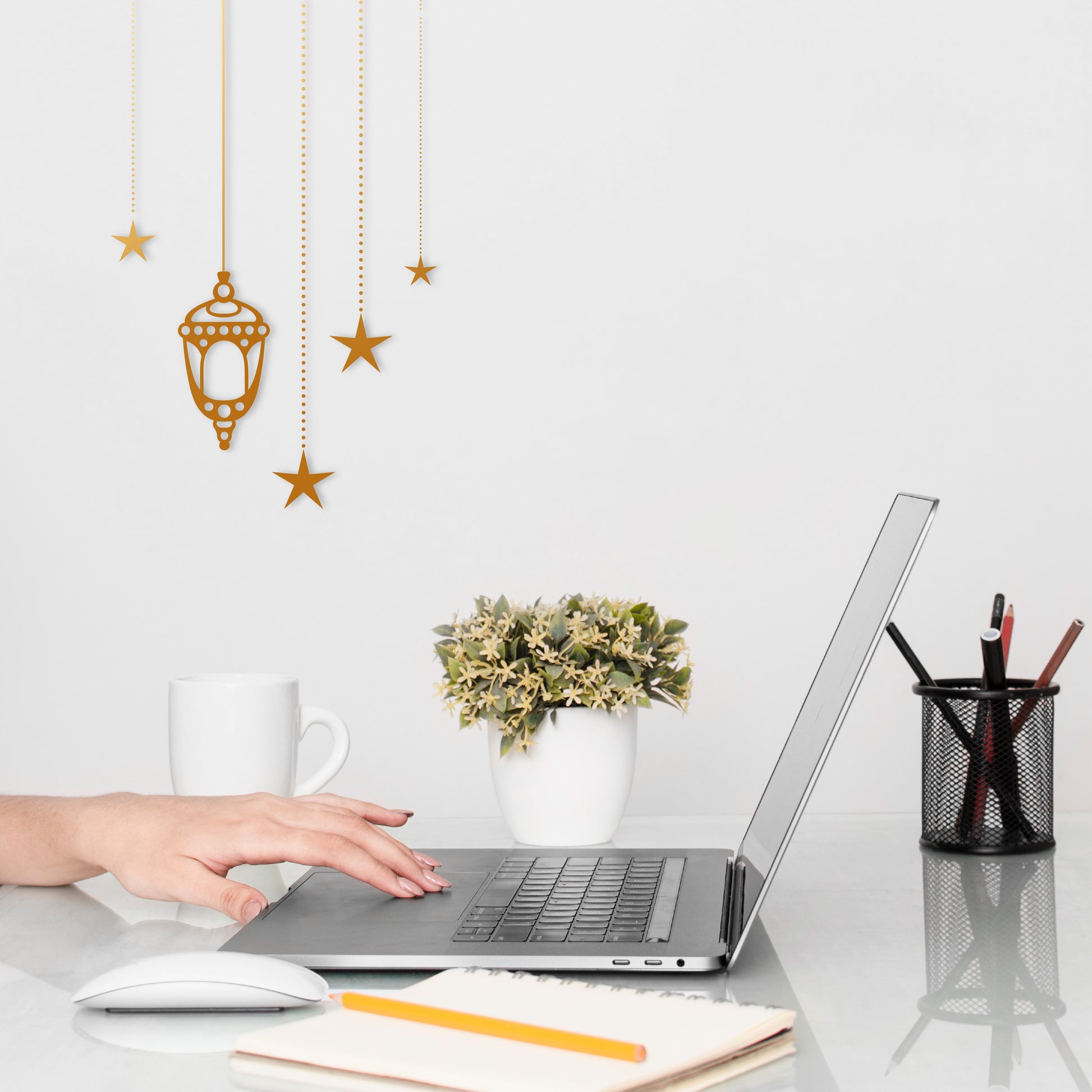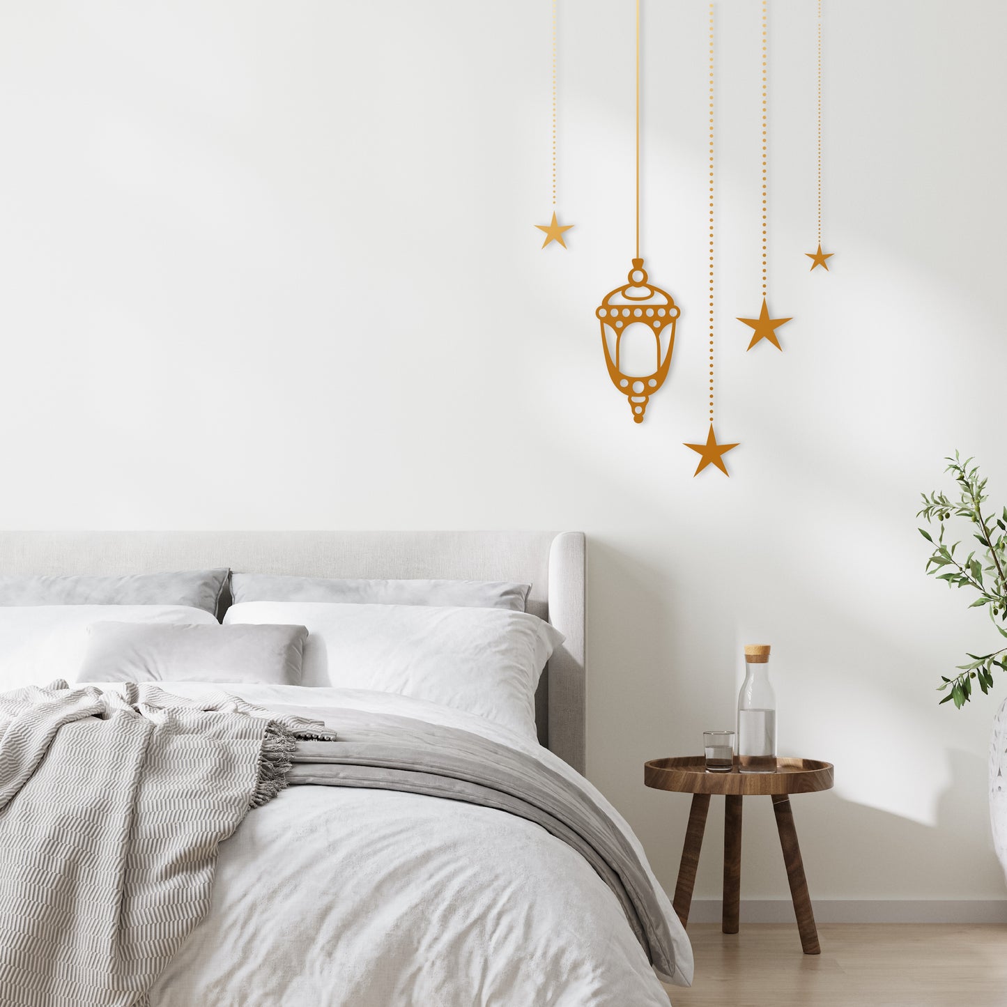 Infuse your space with a celestial glow using our 'Starlight Glow' wall decal. Featuring a lamp surrounded by stars, this design adds a touch of magic and radiance to your walls, creating a cozy and enchanting atmosphere.