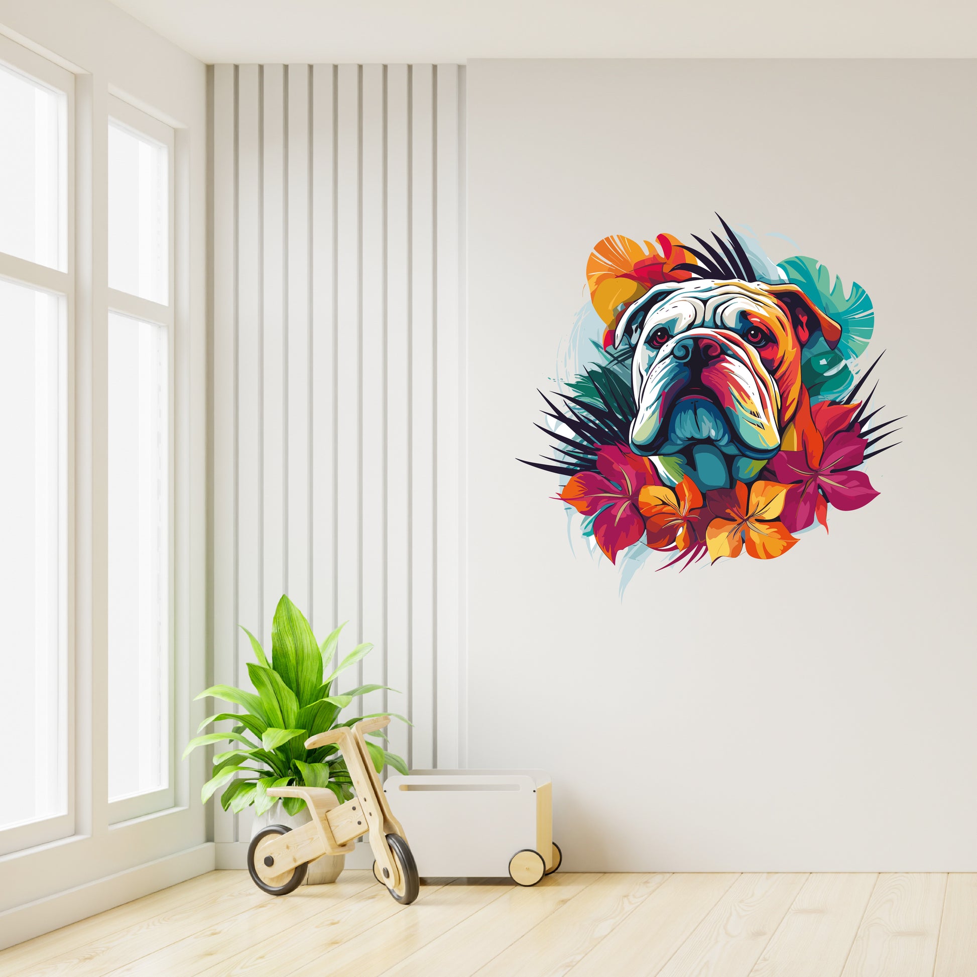 Custom Wall Decals - Vibrant Bulldog Charm: Colorful Bulldog Wall Decal Delight!