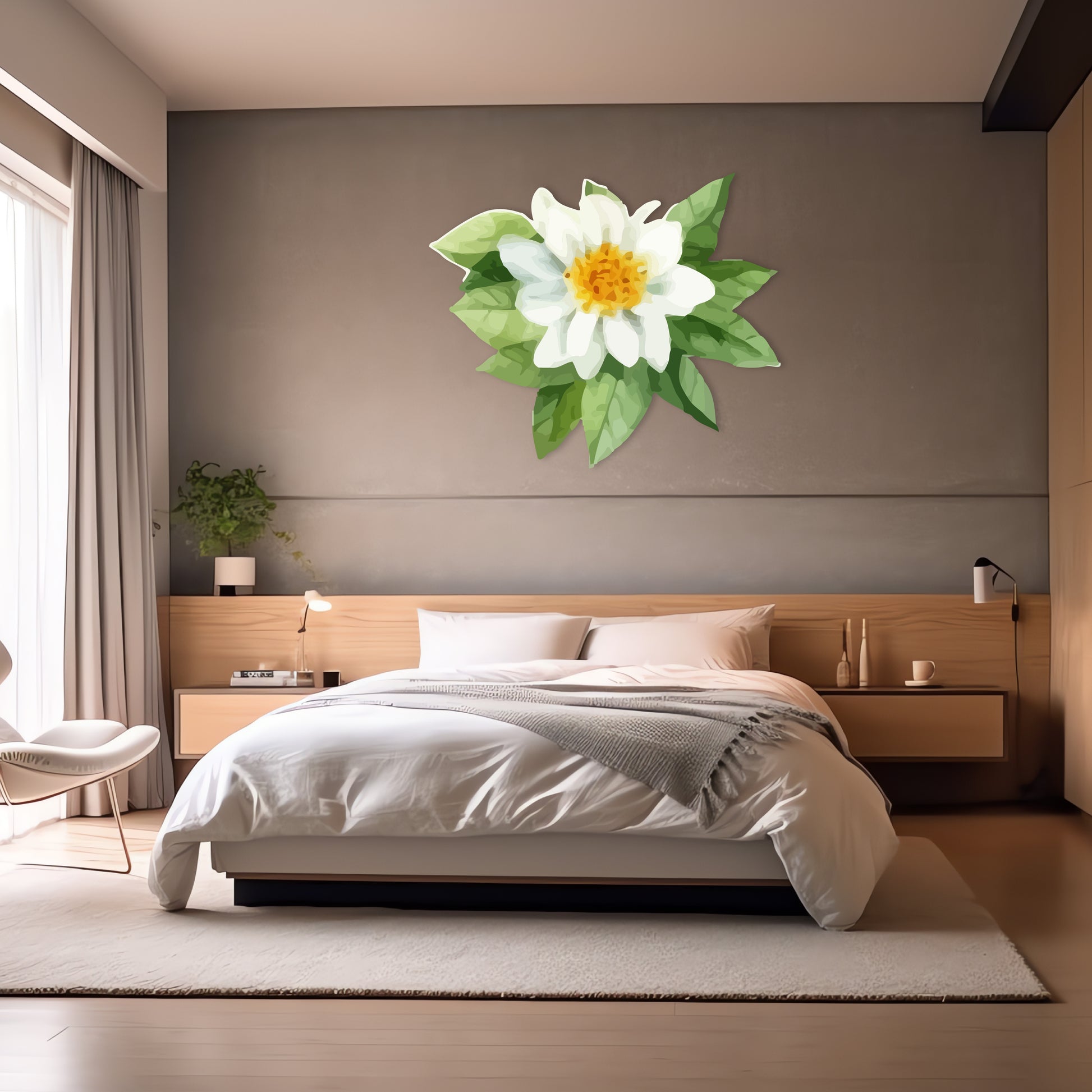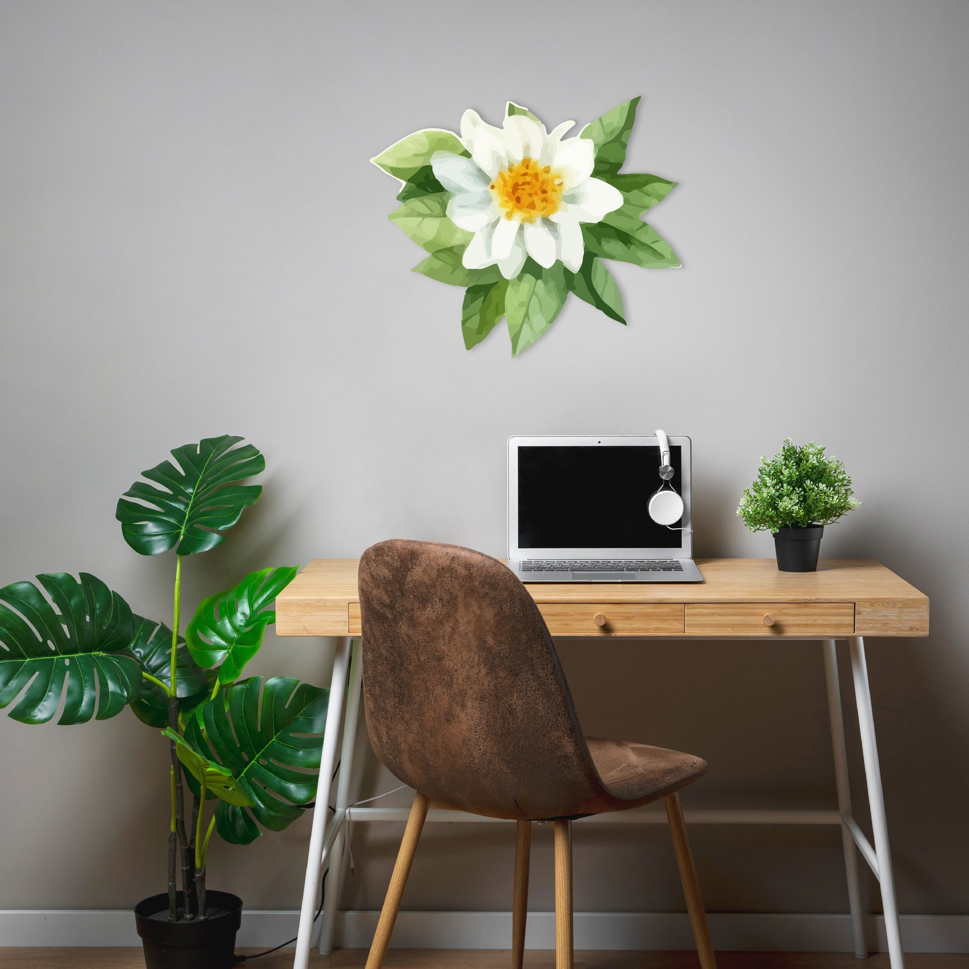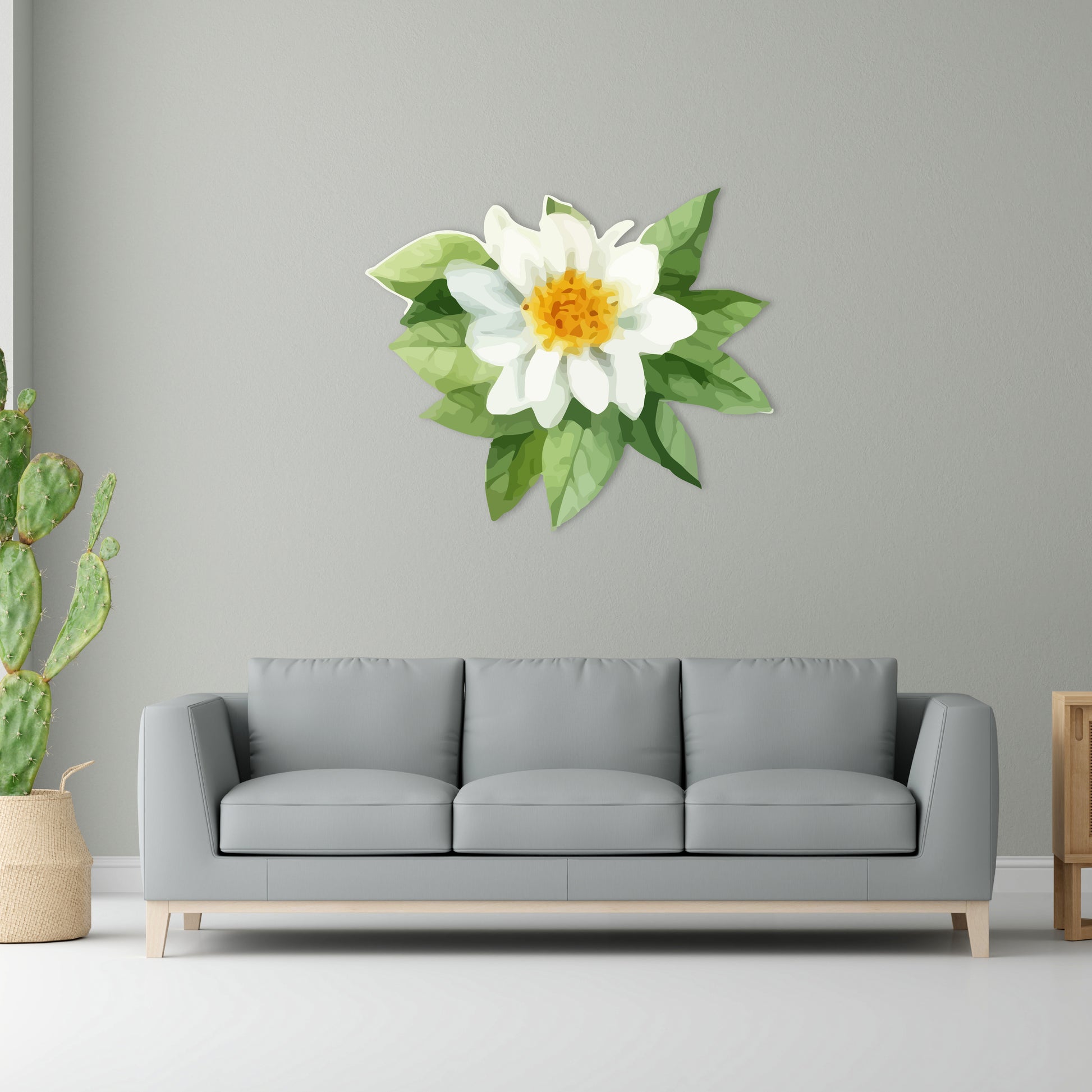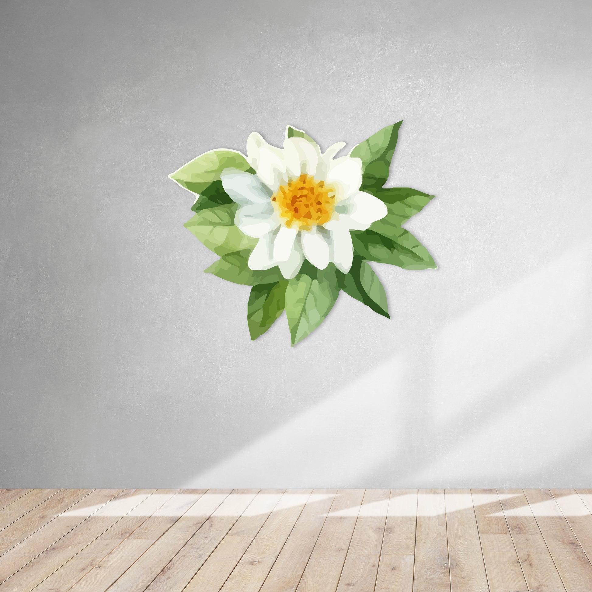 Elevate your space with the ethereal beauty of 'Whimsical Blooms.' This watercolor decal features a delicate white flower surrounded by lush, leafy splendor, creating a tranquil and enchanting atmosphere on your walls.