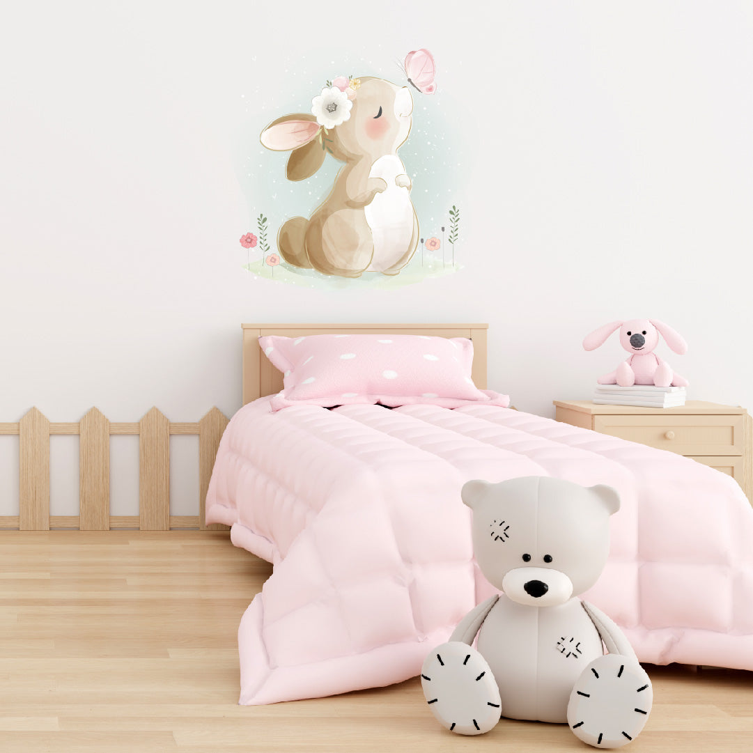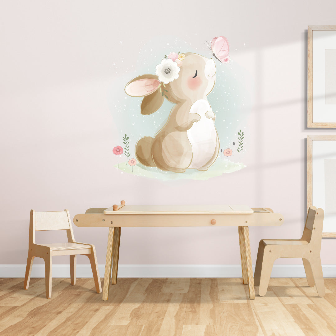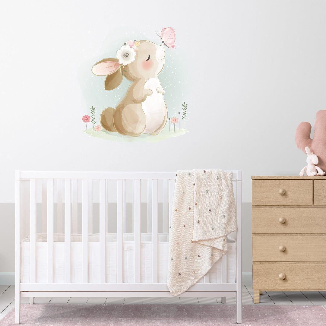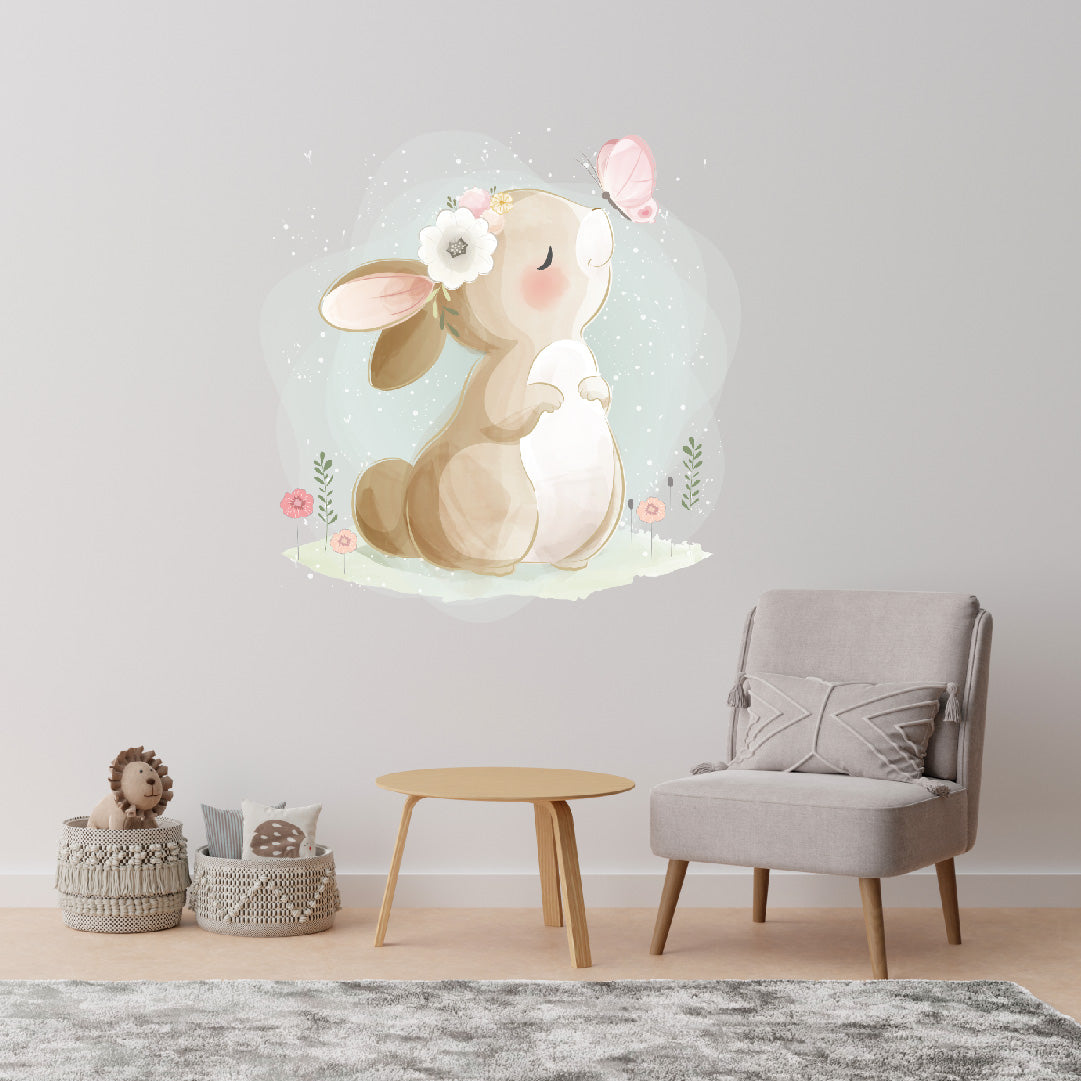 Custom Wall Decals - Whimsical Whiskers: Watercolor Rabbit and Butterfly Wall Decal Fantasy!