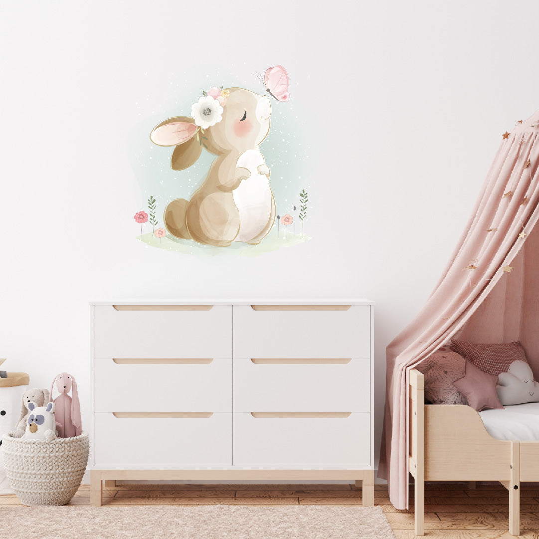 Step into a whimsical world with our 'Whimsical Whiskers' wall decal. Featuring a watercolor rabbit surrounded by butterflies, this enchanting design brings a touch of fantasy and magic to your walls, inviting you to embrace the joy of imagination.